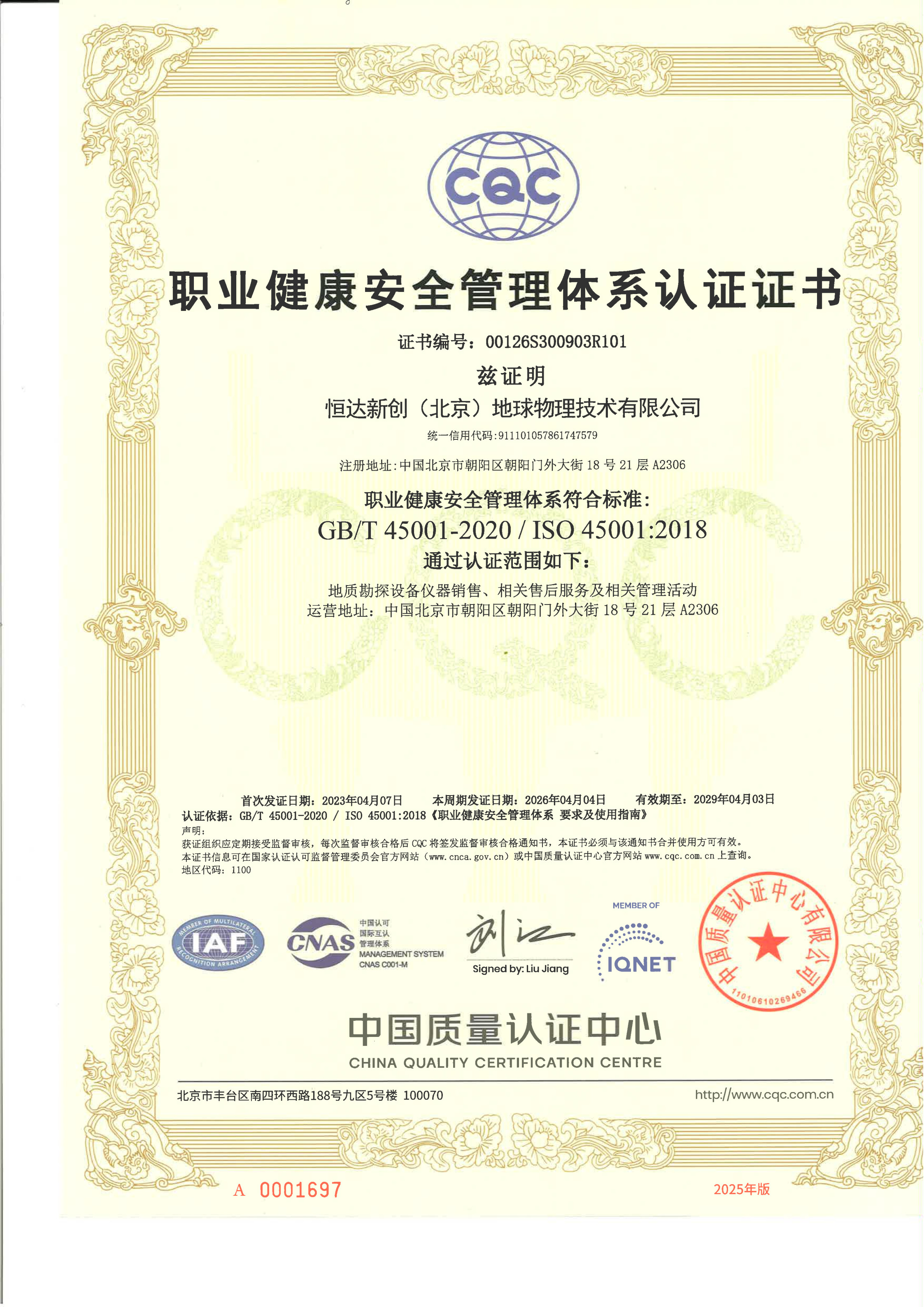 • 职业健康安全管理体系认证证书