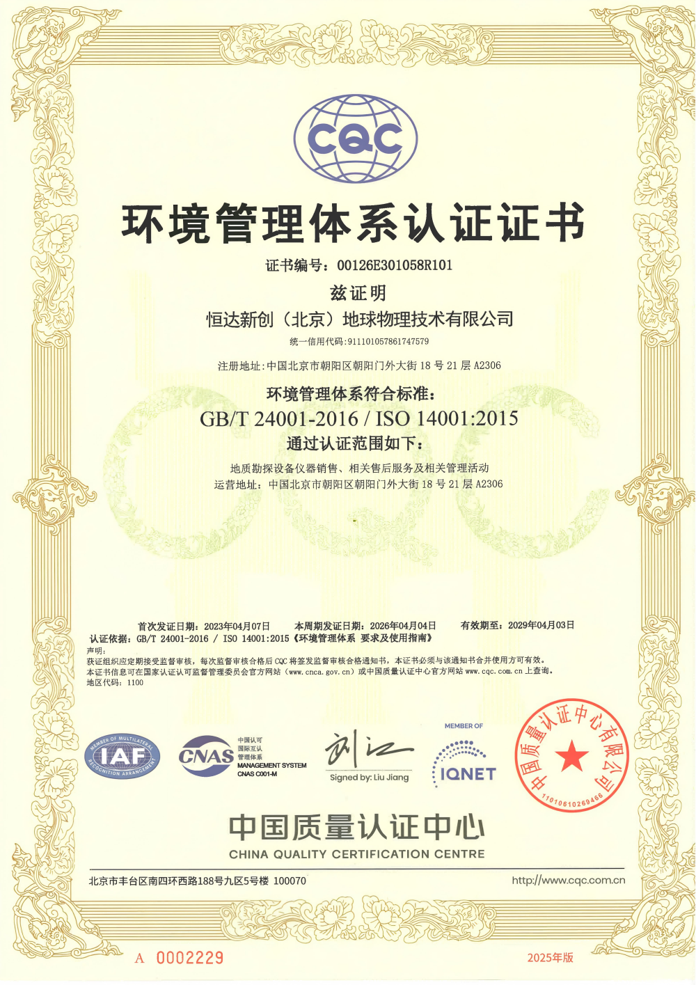 • 环境管理体系认证证书