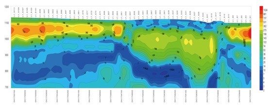 采取AMT技术在北京西郊某煤矿探测采空区,该采空区大量积水,主要显示低阻。