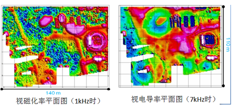 使用GEM-2对过去位于纽约州Binghamton工业厂房的站址进行了场地环境地质评价,目的是识别和描绘过去施工时的地下地质特征。上图的数据显示了埋藏的地基、管线、充填区、混凝土垫层、污染物和其它与之前厂址相关的埋藏目标体。