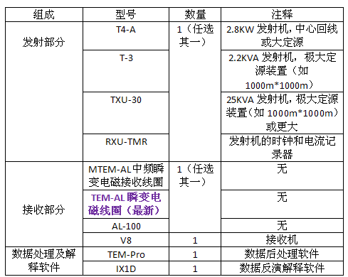 根据野外施工使用的发射场源和接受电磁分量的不同,把V8 TEM功能配置分为两大类: